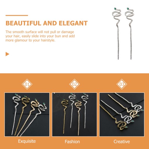 - Szpilka do włosów składa się głównie ze stopu cynku i kryształu górskiego, z wzorem węża. Jest łatwy w użyciu i niełatwy do odpadnięcia, odpowiedni do każdego rodzaju włosów kok. Klasyczny wzór wężowych włosów, idealny do ozdabiania fryzur w stylu chińskim lub na imprezy tematyczne.