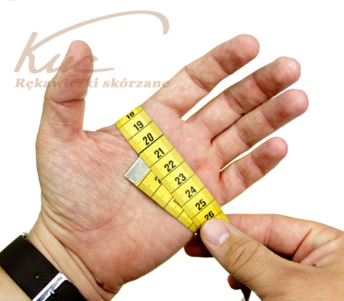 Rękawiczki produkujemy w 5 rozmiarach męskich i 4 damskich. Aby ustalić twój rozmiar musisz zmierzyć obwód dłoni jak na załączonym obrazku. Zrób to dość ścisle ale nie ściskaj dłoni metrem. Co 1 cm obwodu jest kolejny rozmiar. Jeżeli jesteś w połowie pomiędzy rozmiarami to zaokrąglaj w dół jeżeli wolisz bardziej dopasowane rękawiczki lub w górę jeżeli preferujesz luźniejsze dopasowanie. Czyli mając wynik 21,5cm zaokrąglij do rozmiaru 21 lub 22 w zależności od preferencji.Rozmiary damskie: