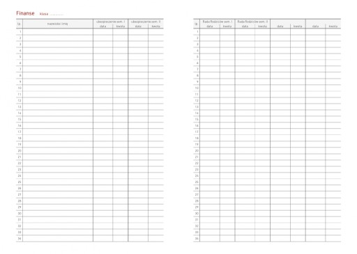 - tabela ocen na I i II semestr – 18 tabel (9 tabel na I semestr, 9 tabel na II semestr)