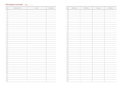Poręczny format zbliżony wielkością do zeszytu szkolnego ułatwia korzystanie z terminarza. Przejrzysty układ kalendarium pomaga w planowaniu i koordynowaniu terminów. Duża ilość miejsca na notatki oraz dodatkowe tabele dla nauczycieli i wychowawców pomogą uporządkować informacje, oceny i notatki.