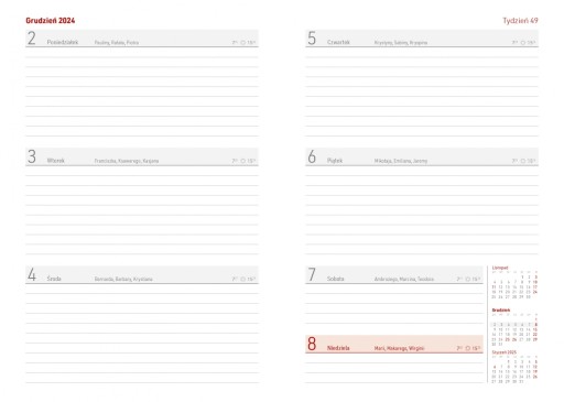 Szczegółowy opis zawartości kalendarza nauczyciela na rok szkolny 2024/2025 w wersji A5 tygodniowej: