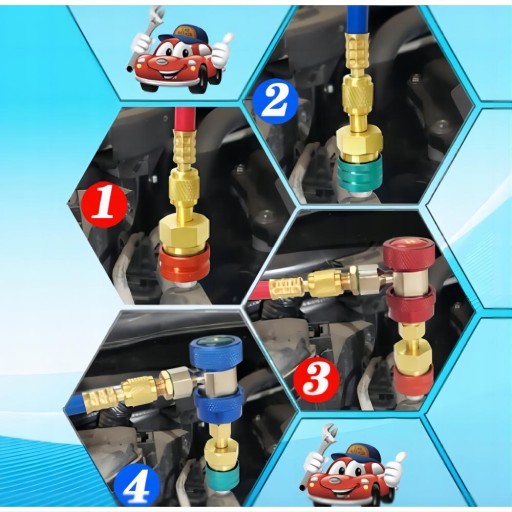 - ✅ Konstrukcja blokady kulowej i gumowy pierścień uszczelniający zapewniają dobre uszczelnienie podczas konwersji R1234YF na R134A.