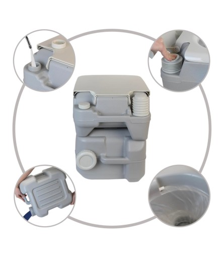 ✔️Podwójny zbiornikowy system: Toaleta składa się z dwóch oddzielnych zbiorników - pojemnika na wodę o pojemności 12L oraz zbiornika na nieczystości o pojemności 20L. Ten innowacyjny system pozwala na wygodne i higieniczne użytkowanie.