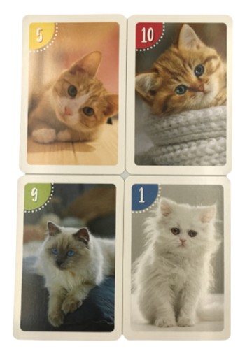 Zestaw 25 kart z pięknymi, realistycznymi wizerunkami kotków, dzięki którym można zagrać z dziećmi w dwie podstawowe gry karciane – „Piotruś” i „Pamięć”. Obie gry wspaniale ćwiczą spostrzegawczość, rozwijają skojarzenia oraz uczą zachowań społecznych. To idealny wstęp dla najmłodszych do świat gier.