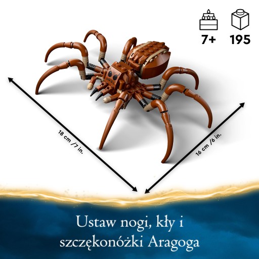 Młodzi czarodzieje, czarownice i mugole™ mogą teraz przeżyć magiczne przygody w Zakazanym Lesie™ dzięki zestawowi LEGO® Harry Potter™ Aragog w Zakazanym Lesie™ (76434). Magiczny prezent dla dzieci i fanów Harry'ego Pottera w wieku od siedmiu lat zawiera największą w historii i najbardziej realistyczną figurkę Aragoga zbudowaną z klocków LEGO z ruchomymi nogami, kłami i szczękonóżkami. W zestawie są też minifigurki Harry'ego Pottera i Rona Weasleya™ z uśmiechniętymi lub przestraszonymi twarzami, a także różdżki i lampion. Zestaw obejmuje małą scenę Zakazanego Lasu do zbudowania, dwie figurki małych pająków i pajęczynę, które poszerzają możliwości magicznej zabawy.