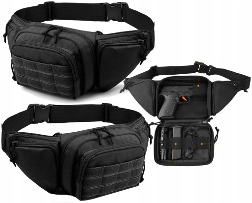 Wytrzymały materiał poliester 600D chroni przed wilgocią. Pas zakończony klamrą można dowolnie regulować.
