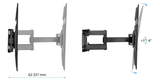 Wielokierunkowa Regulacja - Nachylenie +3/-6° (góra/dół), obrotu 180° (prawo/lewo) oraz odległość od ściany w zakresie 62-357 mm.
