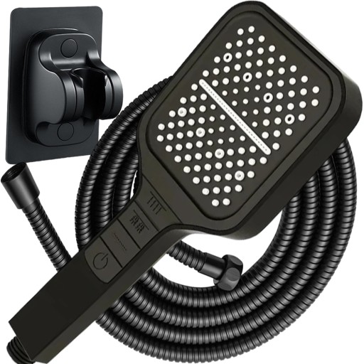 DUŻA SŁUCHAWKA PRYSZNICOWA KWADRATOWA 7 FUNKCJI CZARNA Z WĘŻEM UCHWYTEM