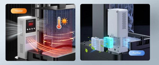 Drukarka Photon Mono M5s Pro pozwala na drukowanie szczegółów cieńszych od włosa. Jednolitość światła została zwiększona do 85%, zapewniając precyzje. Nowo dodany moduł podgrzewacza i oczyszczacza powietrza (2 w 1) zapewnia temperaturę powietrza do 40℃, oraz utrzymuje temperaturę żywicy powyżej 20℃. Dzięki temu rozwiązaniu możemy liczyć na pomyślny druk w niskich temperaturach. Oczyszczasz ma wbudowany filtr z węgla aktywnego, który skutecznie pochłania zapach żywicy. Szybko wykrywa i rozwiązuje problemy sprzętowe zapewniając niezawodne wydruki.