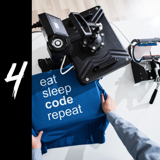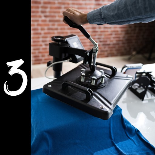 Wycięty z folii, za pomocą plotera tnącego, wzór aplikuje się na tkaniny za pomocą specjalistycznych pras do termotransferu.