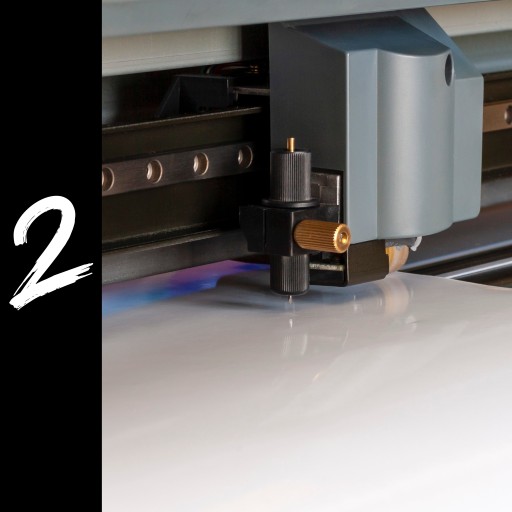 2️⃣Wytnij wzór na ploterze tnącym w odbiciu lustrzanym i oddziel niepotrzebne fragmenty folii.