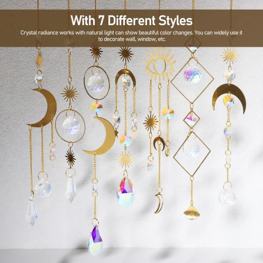 - Czy lubisz łapacze słońca? Czy chcesz użyć łapacza słońca do dekoracji swojej domowej przestrzeni? Jeśli tak, ten produkt jest dla Ciebie dobrą opcją. Ten produkt to wiszący dzwonek wietrzny z 7 różnymi stylami. Kryształowy blask działa z naturalnym światłem, może pokazać piękne zmiany kolorów. Możesz go szeroko używać do dekoracji ścian, okien itp.