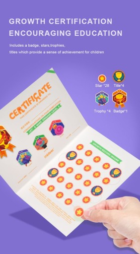 Do zestawu dołączony jest również certyfikat, który służy do nagradzania wyników dziecka za pomocą kolorowych naklejek.