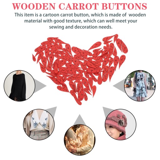 - Ten przedmiot to kreskówkowy guzik marchewkowy, który jest wykonany z trwałego drewnianego materiału o dobrej teksturze, który może dobrze spełnić Twoje potrzeby w zakresie szycia i dekoracji. Jest wykonany z doskonałym kunsztem. Guzik ma gładką powierzchnię i jest wygodny w dotyku. Konstrukcja z dwoma otworami ułatwia szycie i użytkowanie. To świetny ozdobny guzik, przyniesie ci dużo zabawy.