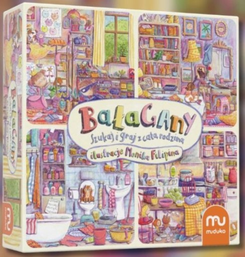 Witajcie w świecie Bałaganów! W Waszym domu, garażu i ogrodzie zapanował kompletny chaos. Wszystko leży tam, gdzie nie powinno zabawki są w kuchni, nuty w łazience, a klucze i karty ktoś rozrzucał po całym domu. Czy uda się Wam przywrócić porządek, snując przy tym fascynujące opowieści? Podejmijcie wyzwanie! Świetna zabawa gwarantowana! W grze Bałagany każdy znajdzie coś dla siebie, przygotowaliśmy dla was 4 warianty świetnej zabawy. W każdym wariancie bawimy się w poszukiwaczy różnych przedmiotów lub zwierzątek w domu, ogrodzie i garażu. Możecie zagrać w wariant kooperacyjny, rywalizacyjny lub z opowiadaniem historyjek. Dodatkowo możecie wymyślać własne zasady i warianty rozgrywki. Ogranicza was tylko wasza wyobraźnia! Zawartość opakowania: 12 dużych puzzli (z których układa się planszę o wym. 700x500 mm) 55 kart z zadaniami (58x88 mm) instrukcja Liczba graczy: 1-6 osób Czas gry: około 15 minut Wiek: 5+