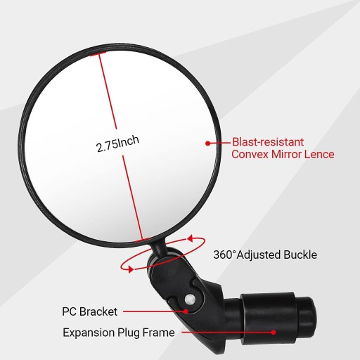- Lusterko do rowerów górskich ma wypukłą soczewkę, zapewniającą szerokie pole widzenia i można je dostosować do dowolnego kąta widzenia. Zwróć uwagę, aby usunąć folię ochronną przed użyciem lusterka rowerowego.