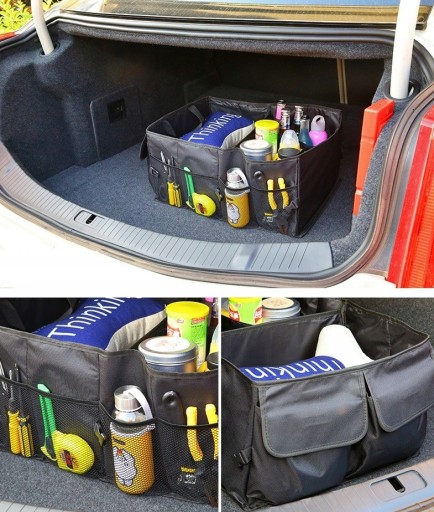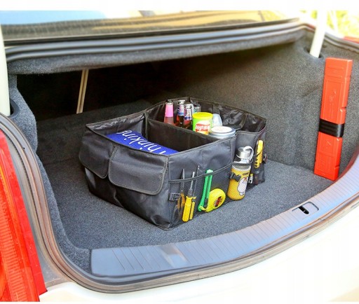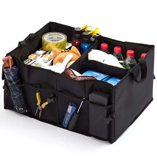 Można w nim przechowywać różnorodne przedmioty, takie jak narzędzia, zakupy, akcesoria samochodowe, a także mniejsze przedmioty dzięki praktycznym kieszeniom.