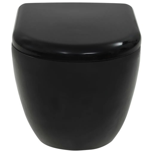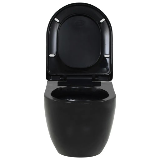 vidaXL Podwieszana toaleta ceramiczna ze spłuczką, czarna