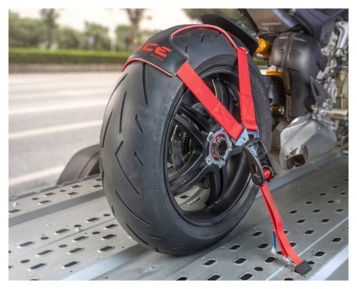 Łatwy i bezpieczny transport motocykli na przyczepie, pick-upie lub furgonetce nie jest nauką o rakietach, ale zawsze jest argumentem przemawiającym za systemem mocowania *TyreFix Pro* firmy Acebikes. System ten zapewnia bezpieczne mocowanie, trzymanie i kompleksową ochronę. Elastyczny i wytrzymały materiał nadaje się do każdego rozmiaru opony. Aby zapobiec poślizgowi motocykla, system *TyreFix Pro* jest wyposażony w specjalny materiał cierny.
