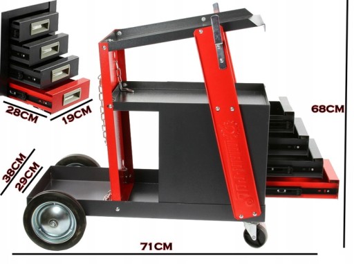 Stabilny wózek spawalniczy o wytrzymałej stalowej konstrukcji z dodatkowymi czterema szufladami!