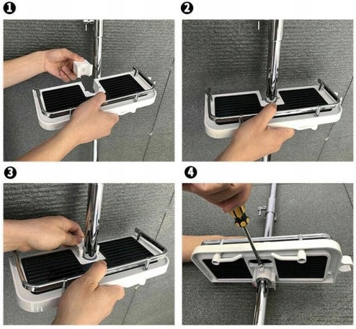 ✅Wygodna, kompaktowa półka do montażu na drążku prysznicowym.