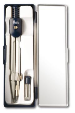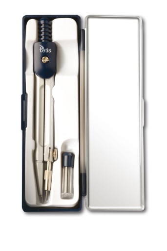 Metalowy cyrkiel firmy TETIS idealny do pracy w szkole jak i w domu. Cyrkiel zapakowany w plastikowe etui. W komplecie dołączony pojemniczek z 2 wkładami zapasowymi.