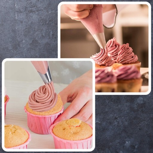 ✔️ Dekorowanie z Klasą✔️Nasz rękaw cukierniczy umożliwia tworzenie różnorodnych wzorów, zarówno prostych jak i skomplikowanych. Możesz nim ozdabiać ciasta, muffinki, babeczki, ciasteczka i wiele innych wypieków, dodając im wyjątkowego uroku.