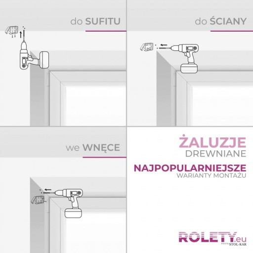 Montaż żaluzji może odbywać się na różne sposoby, w zależności od Twoich preferencji: