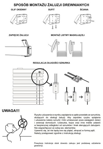 Należy pamiętać, że wymiar podany w aukcji to całkowita szerokość żaluzji, dlatego ważne jest odpowiednie dostosowanie wymiarów przy montażu. Instrukcja montażu oraz niezbędne elementy montażowe są dołączone w zestawie.