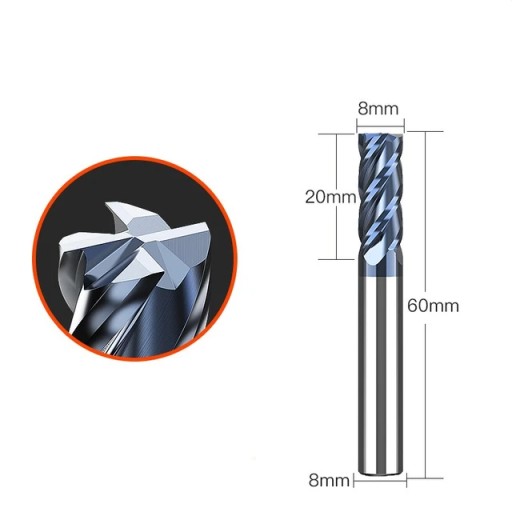 FREZ WĘGLIKOWY fi 8 mm VHM WĘGLIK 50 HRC 4-PIÓRA