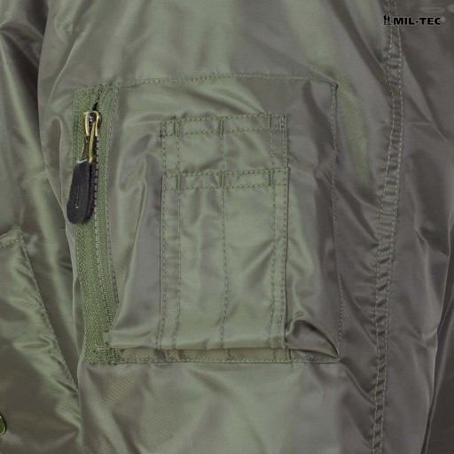 Kultowa kurtka wzór US Air Force - MA1 znana jako "Flyers", "Bomberka" lub "Flek". Produkt niemieckiej marki Mil-Tec. Przeznaczona na rynek cywilny, z zachowaniem oryginalnego wojskowego kroju. Model MA1 pierwotnie używany przez pilotów myśliwców i załogi bombowców, zaadoptowany przez obsługę naziemną i zespoły na lotniskowcach. Kurtka MA1 to propozycja dla osób, które chcą zamanifestować swój styl bycia. Po przewróceniu na "lewą", pomarańczową stronę służy za kurtkę ostrzegawczą. Jaskrawy kolor przyciąga wzrok, miał ułatwiać odnalezienie zestrzelonego pilota.