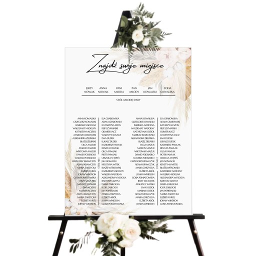 Dodaj elegancji i ciepła swojemu weselu dzięki naszemu pięknemu plakatowi z listą gości, która ułatwi odnalezienie gościom swoich miejsc przy stole.