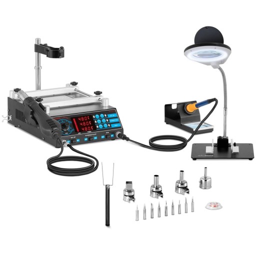 Urządzenie łączy w sobie kilka funkcji niezbędnych przy wykonywaniu profesjonalnych prac lutowniczych z układami elektronicznymi takimi jak SOIC, QFP, PLCC, BGA, SMD itp. Urządzenie sterowane jest w pełni cyfrowo i kontrolowane przez zaawansowany układ PID zapewniający bardzo precyzyjne sterowanie temperaturą.