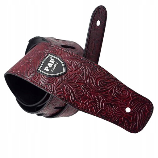 Wytrzymały Pasek Ze Skóry PU Do Gitary Basowej Burgundii