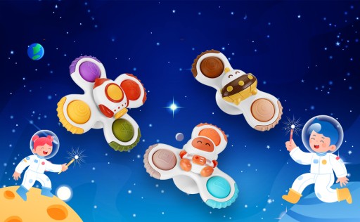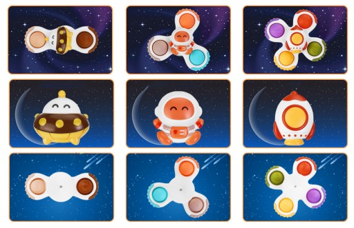 3-częściowe zabawki obrotowe z przyssawkami, unikalny wzór, z astronautami, statkami kosmicznymi, rakietami.