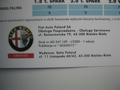 Alfa Romeo GTV 1994-2004 Руководство по эксплуатации польское оригинал Alfa GTV 2000 года выпуска