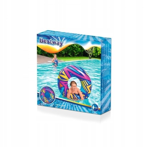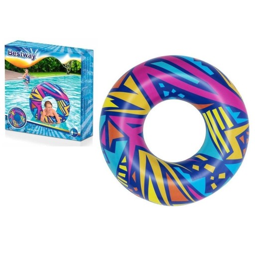 Koło do pływania Bestway Geometric ma kreatywną grafikę w stylu retro. Materiał jest przeznaczony do wielokrotnego pompowania i opróżniania, a jednocześnie pozostaje lekki. Ten fajny, szalony wygląd przyciągnie uwagę wszystkich na basenie. Idealny na imprezy, Instagram lub po prostu relaks na plaży. Użyj go nad jeziorem lub basenem, jest wszechstronny i zabawny. Ten jedyny w swoim rodzaju nadruk w stylu retro doda energii i wolności Twojemu wewnętrznemu stylowi. Wbudowane, wytrzymałe uchwyty pozwalają dzieciom i dorosłym na pewny chwyt podczas poruszania się po falach. Po prostu nadmuchaj koło i jesteś gotowy do pływania. Spuszczanie powietrza z pierścienia jest szybkie i łatwe, dzięki czemu można go łatwo schować. To świetna zabawa w domu lub na zewnątrz. Użyj go na przyjęciach urodzinowych lub nocnych i wnieś odrobinę mody do swojego wydarzenia. Odpręż się i zrelaksuj w dobrym stylu z H2OGO! Geometric.