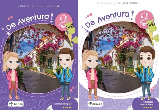 !De Aventura! 2 to drugi z serii pięciu podręczników przeznaczonych dla dzieci i młodzieży od 4 do 8 klasy szkoły podstawowej (1015 lat). Uczniowie będą uczyć się hiszpańskiego razem z Leonem, Sofą i całą paczką ich przyjaciół, zwierzaków i smoków. !De Aventura! to podręcznik wyjątkowy, ponieważ zarówno bohaterowie, jak i poziom merytoryczny i językowy podążają za uczniami, dostosowując się do ich wieku i wiedzy. Seria została zaprojektowana tak, aby zapewnić jednocześnie efektywną, skuteczną i zabawną naukę.