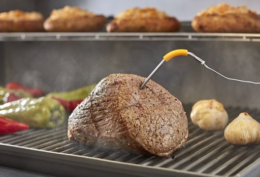 - Połączony z aplikacją termometr pozwala monitorować stopień wypieczenia aż czterech porcji mięsa jednocześnie