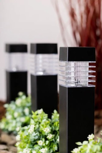 4x lampa solarna szpikulec w kolorze czarnym NARIS znanej renomowanej w branży oświetleniowej marki LUMILED sprawdzi się jako dekoracyjne i praktyczne oświetlenie Twojego ogrodu.