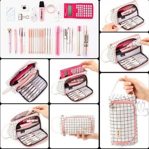 ✅ Organizacja: Duża liczba przegródek zapewni ład i porządek. Piórnik pomieści do 50 długopisów ,ołówków. Główną kieszeń można łatwo otworzyć, co pozwala szybko sprawdzić, co jest w środku i znaleźć dokładnie to czego potrzebujesz. Posiada przednią kieszeń na telefon ,kalkulator.