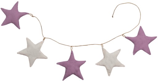 W skład zestawu wchodzi również girlanda z 5 gwiazdek. Gwiazdki wykonane są z tkaniny bawełnianej.
