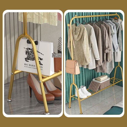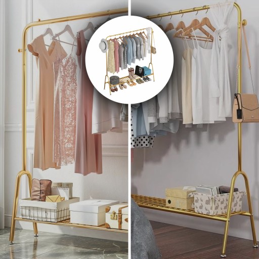 WIESZAK NA UBRANIA stojak stojący półka ZŁOTY