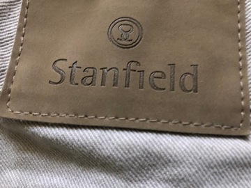Spodnie są używane w bardzo dobrym stanie .Wg metki STANFIELD ,rozmiar 34/34,a materiał to 100%bawełna.Podaję wymiary;szerokość nogawki na dole-19cm,stan przód-28cm .Rozporek zapinany na suwak metalowy i w pasie guzik metalowy nitowany z logo firmowym.