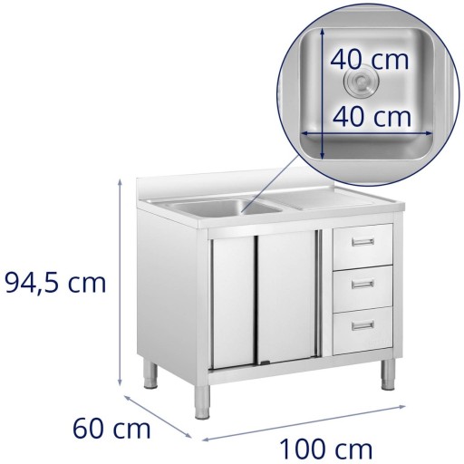 Zlew basen gastronomiczny jednokomorowy z szafką z drzwiami przesuwnymi szufladami stalowy 100 x 60 x 94.5 cm