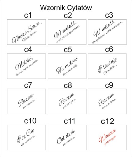 1. Imiona i datę ślubu ( Możemy zrobić wersję bez personalizacji )