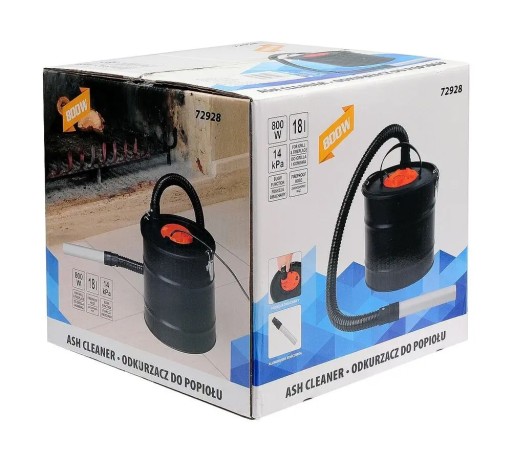 Odkurzacz do popiołu z kominka lub grilla, silnik o mocy 800W (maks. 1000W), podciśnienie: 14kPa,