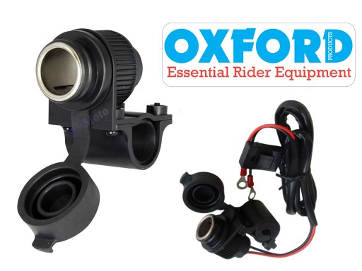 Gniazdo zapalniczki Oxford 12V wejście standardowe z mocowaniem na kierownicę, lusterko, 100% wodoszczelne. Można montować również w owiewce.