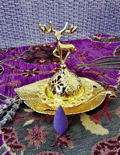 Uniwersalna podstawka na kadzidełka stożkowe w stylu orientalnym ozdobi wnętrze każdego domu. Może służyć jako elegancki świecznik i kadzidło. Podstawka wykonane ze stali nierdzewnej dobrej jakości w kolorze złotym.