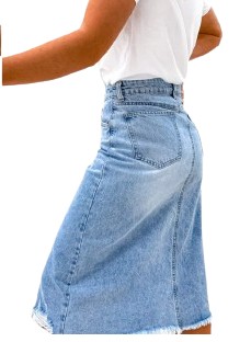 Wybierz naszą niebieską spódnicę jeansową do połowy łydki i ciesz się połączeniem klasycznego stylu, komfortu i wszechstronności w jednym. Idealna dla kobiet, które cenią sobie modę bez kompromisów!